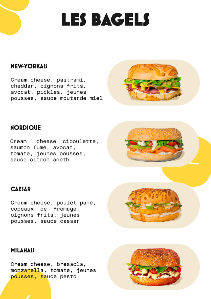 For those craving sides, order the Kroustipop’s—crispy potato bites that promise to be fluffy inside, or indulge in their rich Les Nachos topped with vibrant cheddar or guacamole. And don’t overlook the sweet side of Bagel Corner: their Freakshake is a decadent treat that is sure to satisfy any sweet tooth, while their selection of donuts are a dream come true, generously topped and stuffed to create an unforgettable taste experience.